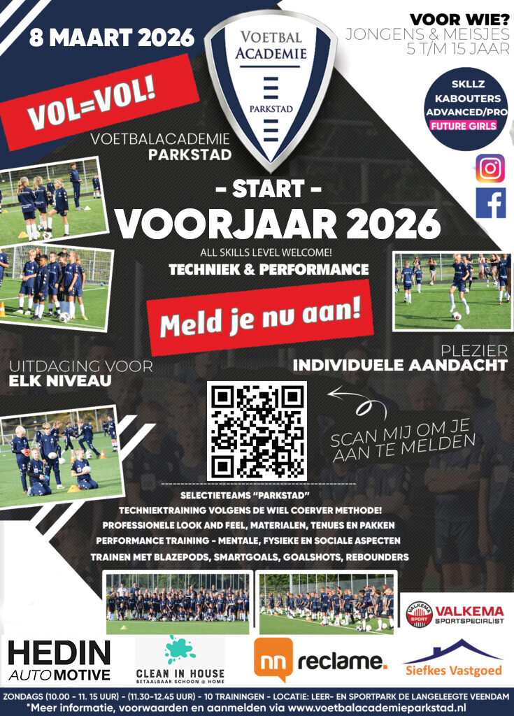 Op zondag 8 maart gaat de Techniek en Performance Voorjaar 2026 van start met een training op het sportcomplex Leer- en Sportpark de Langeleegte in Veendam!